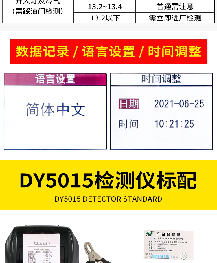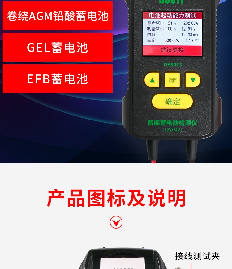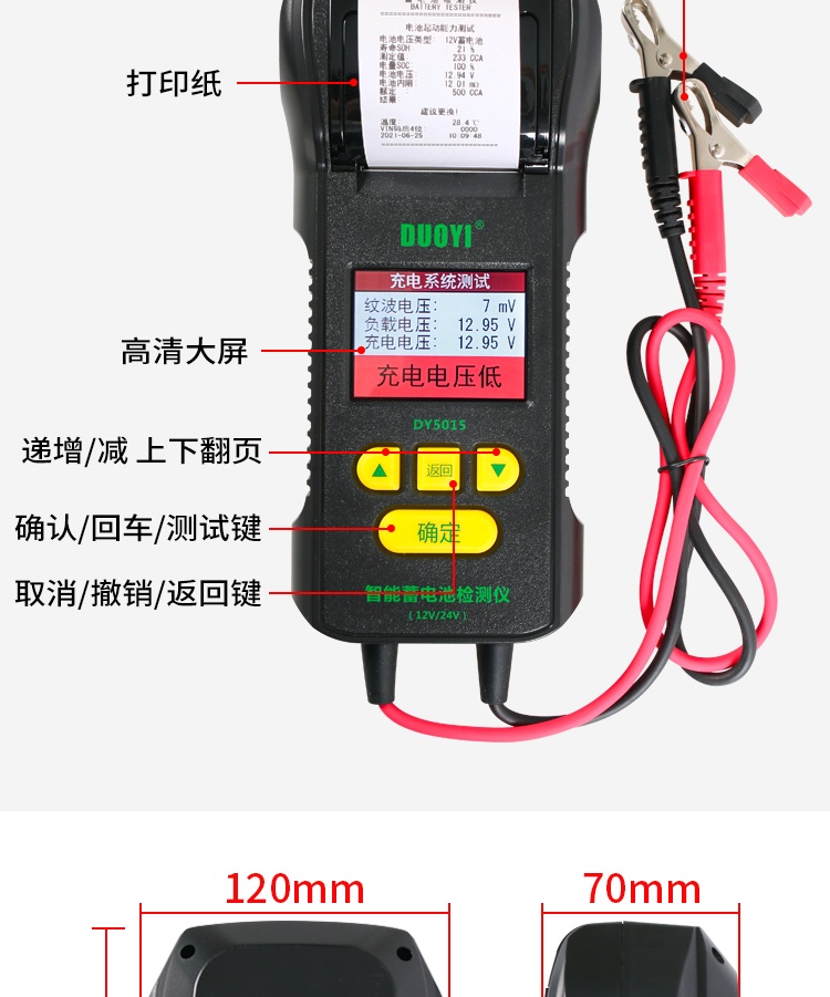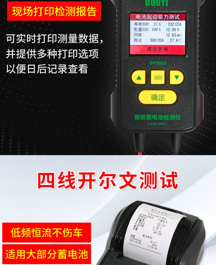 多一DY5015蓄电池检测仪带打印汽车电瓶性能测试仪寿命容量内阻